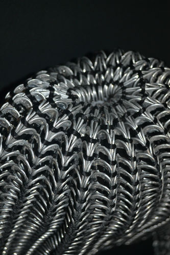 is made from 864 soda pop tops by an artisan group in Mexico.