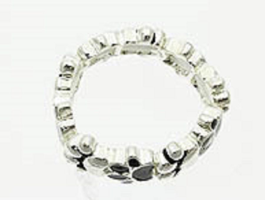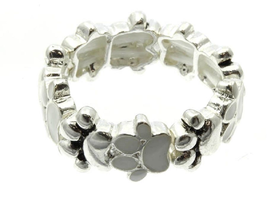 Paw Print Puppy Dog Cat Silvertone White Enamel Stretch Ring USA Seller