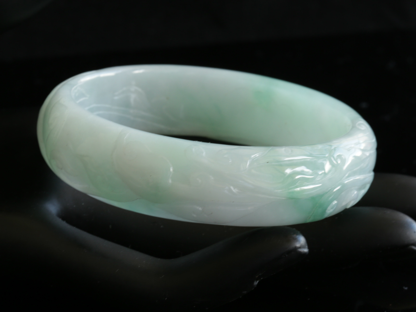 59mm Certified A Grade Untreated Icy Burmese Jadeite Old Jade Carve Bangle $3500