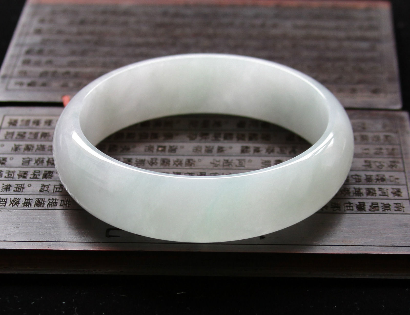 59mm Untreated Natural A Grade Burmese Jadeite Icy Old Jade Wide Bangle retail: $5000