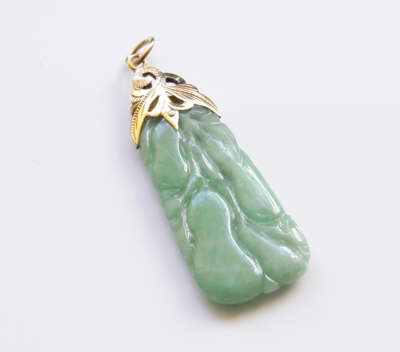 Antique Natural A Grade Untreated Burmese Jadeite Old Green Jade 14K Gold Pendant