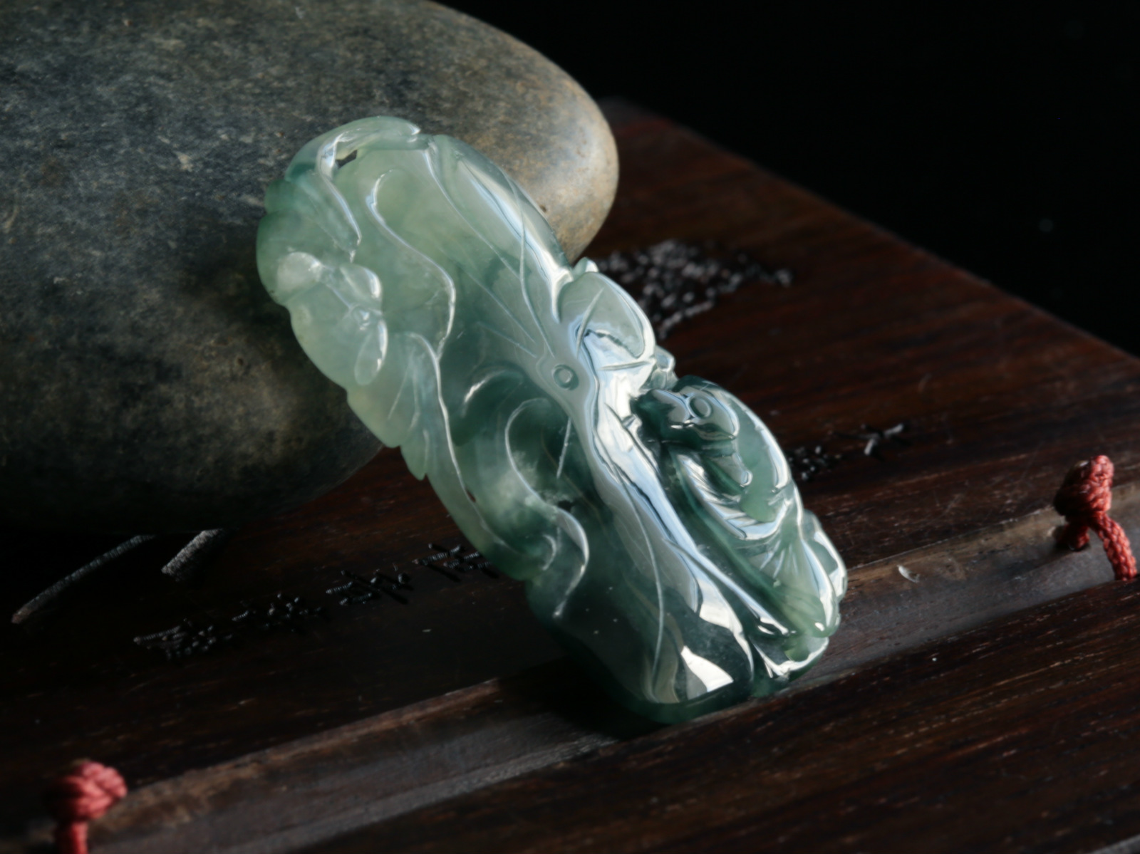 Burmese Jadeite Pendant Guaranteed A Grade Untreated Icy Green Old Jade Lotus