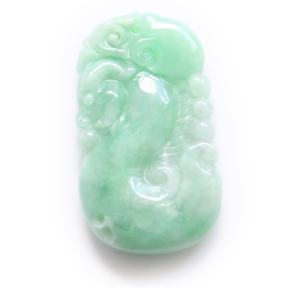 Certified Natural A Grade Untreated Green Burmese Jadeite Old Jade Dragon Pendant