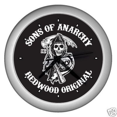The custom wall clock is perfect for a home, business, shop, or for a gift. It measures 10" in diameter. Black plastic frame with a plastic face cover. Requires 1 AA battery (not included).