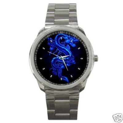 NEW CUSTOM UNISEX SPORTS METAL WATCH BLUE DRAGON COOL