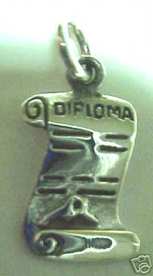 Sterling silver DIPLOMA charm/pendant with jump ring measures 5/8" high by 3/8" wide and weighs 1.30 grams. This item is brightly polished on both sides.