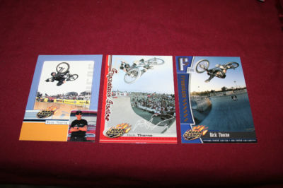 3 card complete BMX sets from the 2000 Road Champs collection. Each set includes 1 "Signature Series" card, 1 "Freestyle Series" card, and 1 Sticker card. Choose 1 set for $2.99 ,from 9 different athletes; Chad Kagy, Rick Thorne, Mike Laird, John Parker, Mike Escamilla, Jason Davies, Kevin Robinson, Fuzzy Hall, and Dennis McCoy. Purchase 1 set and pay $2.99 for shipping, and all additional sets bought from this lot will ship for free. All cards are fresh from sealed packs. Please wait for updated invoice before paying for multiple sets.