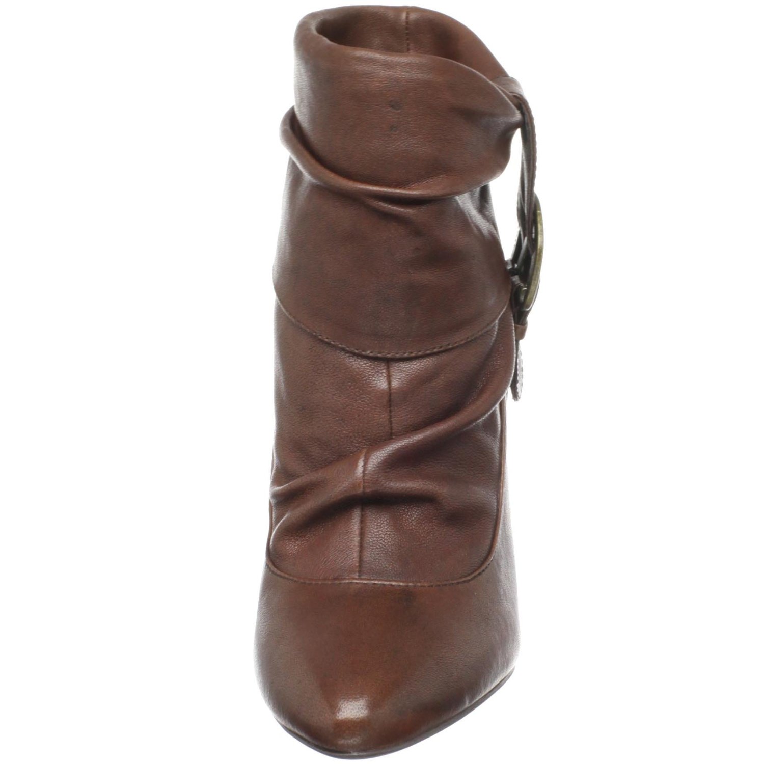 Jessica Simpson's Hazell ankle boot is grab and go kind of footwear. Crafted in the most versatile silhouette there is, this leather ankle boot works wonders with leggings, skinny denim, and short hemlines of any kind. The gathered vamp softens the angular look of the narrow toe and conical heel, while the foldover cuff gets a dash of polish, thanks to a buckled strap.
