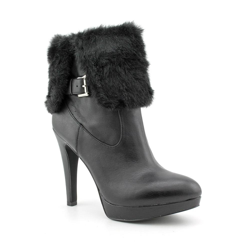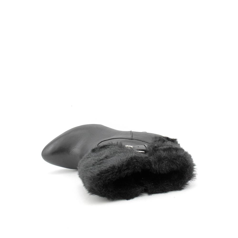 - Almond-toe booties with faux fur cuff