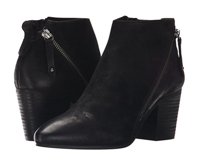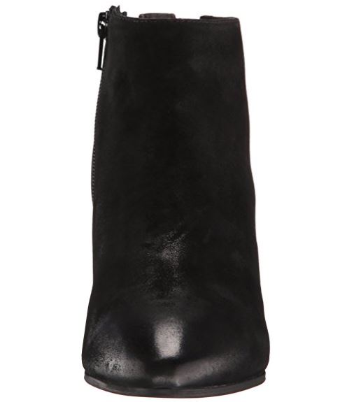 - Ankle boot featuring two asymmetric side zips and rear pull loop