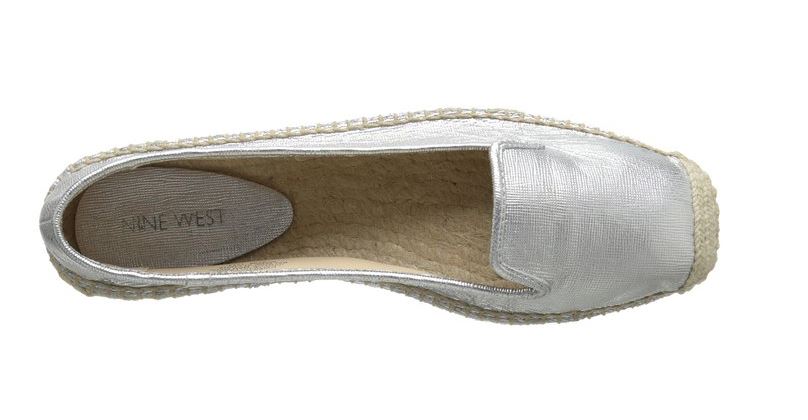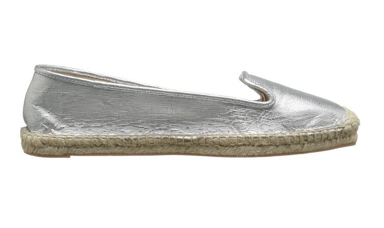 - Espadrille featuring jute-wrapped midsole and metallic upper with dual notches on vamp