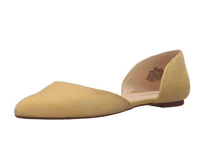 - Pointed-toe d'Orsay flat featuring Nine West logo on footbed