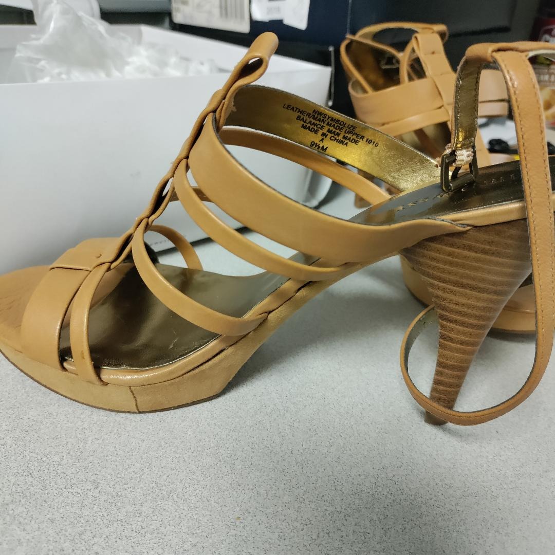 leather Manmade sole Heel measures approximately 4" Platform measures approximately 3/4"