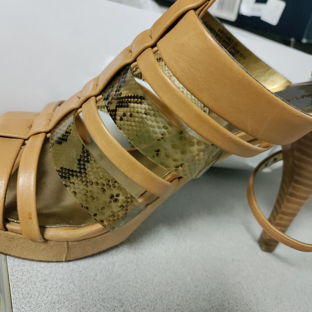 Some peeling on the foot bed and the reptile accent straps have been removed due to cracking. (see pics) The shoe is still in very good condition, otherwise