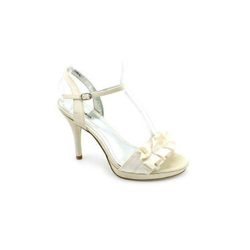 - Sandal with adjustable buckle ankle strap and ruffle decor