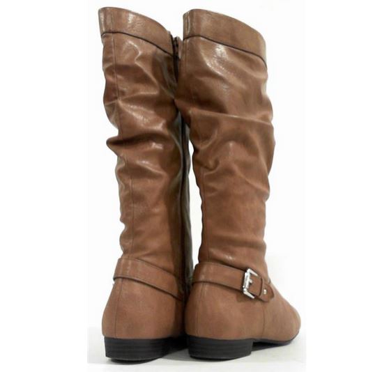 Style & Co. Pettra Womens Buckle Riding Boot Faux Leather Bootie 8.5 Cognac