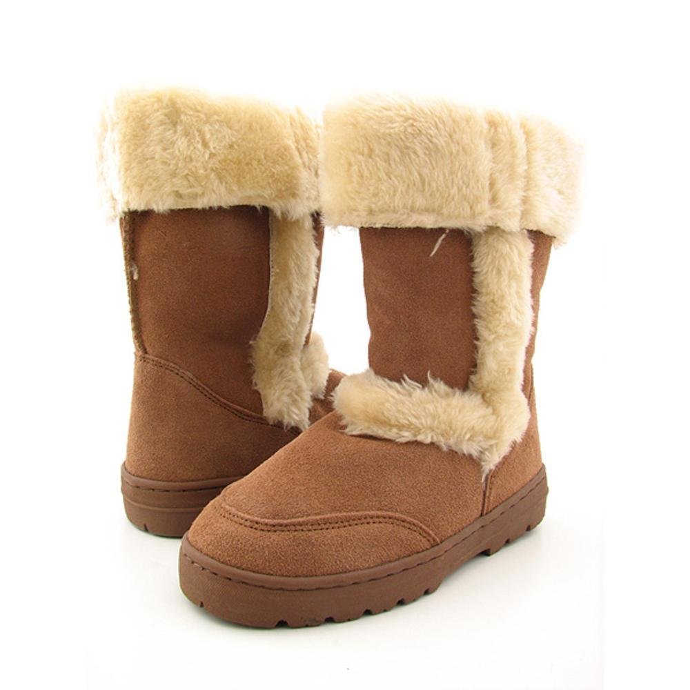 Women's Style & Co. leather Winter Boots Pull-on style. Needle stitch detail. Rounded toe design. Faux fur trim. Man-made heel. Cushioned insole. Faux fur lining. Non-slip rubber sole.