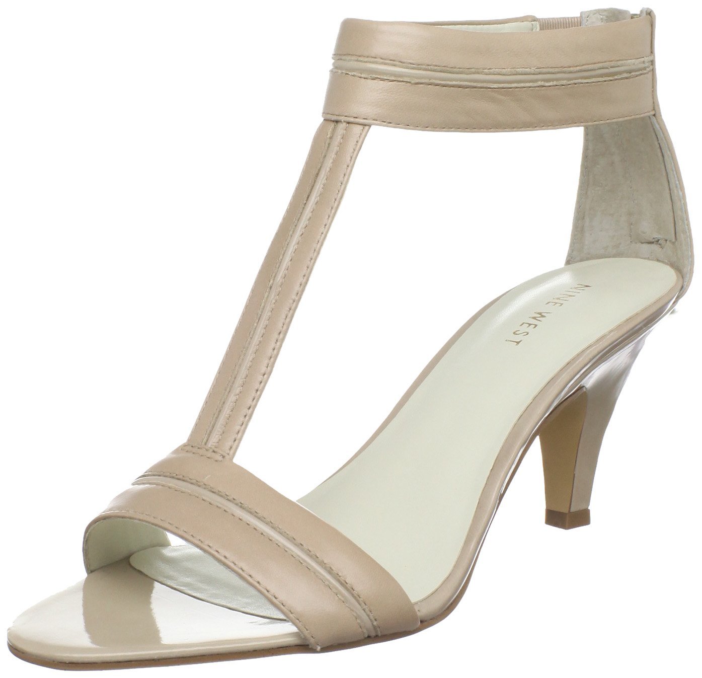 Nine West Women's Briella T Strap Sandal Taupe Leather 6M