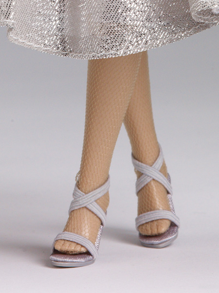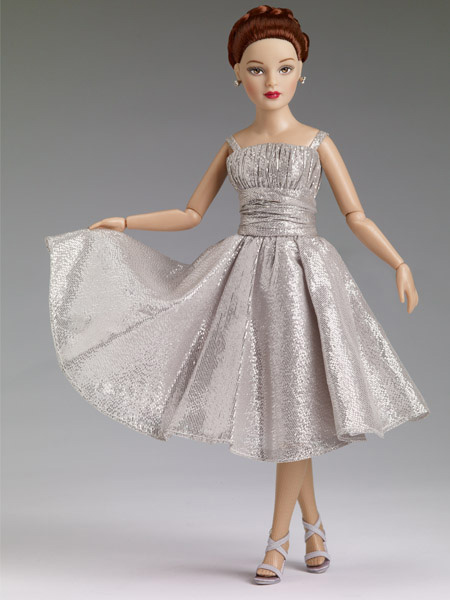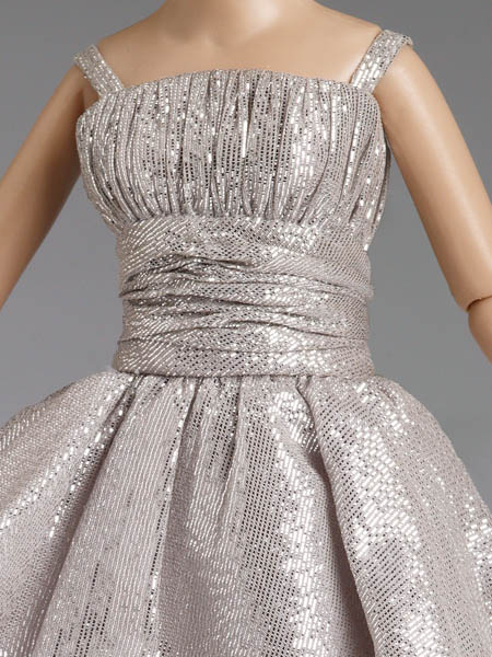 She is wearing a silver lamé dress; silver satin coat; silver satin scarf with rhinestone pin; rhinestone earrings; pantyhose with attached panties; and silver elastic strap shoes A custom display stand is included. A custom display stand is included. Limited Edition of 500. New, mint-in-the-box. She is mint-in-box with original shipping box and has always been in a nonsmoking, animal-free environment.