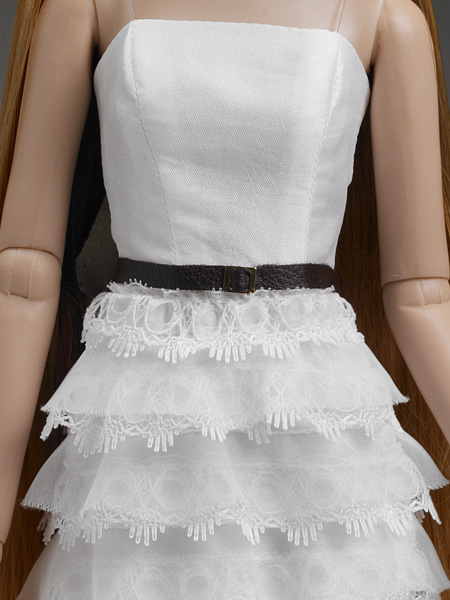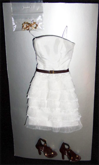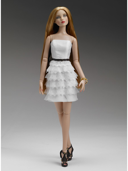 2011 Robert Tonner South Hampton outfit for 16 inch Cami, Jon, and Antoinette bodied dolls, No. T11CJOF07. It will also fit any later dolls using that same body size and type.This fashion includes a white ruffled dress, brown belt, rhinestone and crystal bracelet, and brown high-heeled sandals The shoes in the Cami and Jon outfits have higher arches than the Tyler Wentworth-type bodied dolls can wear. The price is for the outfit only and not the catalog doll modeling the outfit. Limited edition of 300. The price is for the outfit only and does not include the doll modeling it. New, mint-in-the-box.