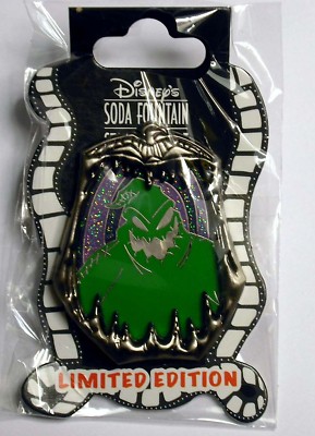 You are bidding on a Disney Soda Fountain Pin that was just released on 3/26/11. This pin features a portrait framed of Oogie Boogie from Tim Burton's “Nightmare Before Christmas” the frame is a silver sculptured frame. Oogie Boogie's portrait background has a glittery purple color. The frame also has a sculptured bat at the top.