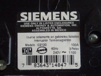 Siemens Q3100 QP 240v Circut Breaker 3 pole New