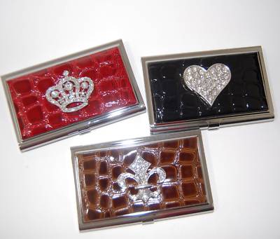 Crystal Croc ID Card Holder Shiny silver-tone metal 3.6"x2.25" ID/business card holder with lid