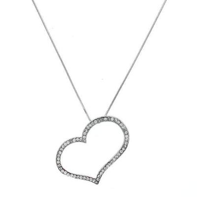 Open Clear Crystal Heart Necklace Silver chain necklace with open heart pendant accented with clear crystals,