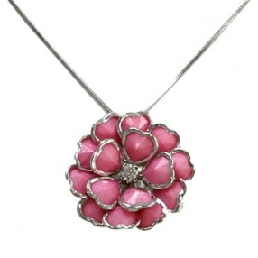 Smaller Silver Pink Petaled Flower & Crystal Necklace!