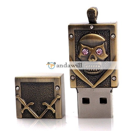 1 X  2GB Flash Memory Disk Gold Skull With Pink Crystal