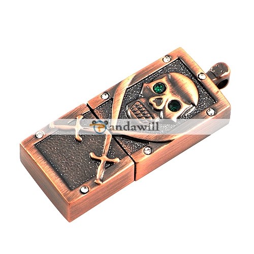 1 X  4GB Flash Memory Disk Gold Skull With Green Crystal