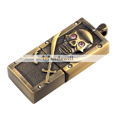 1 X  4GB Flash Memory Disk Gold Skull With Pink Crystal
