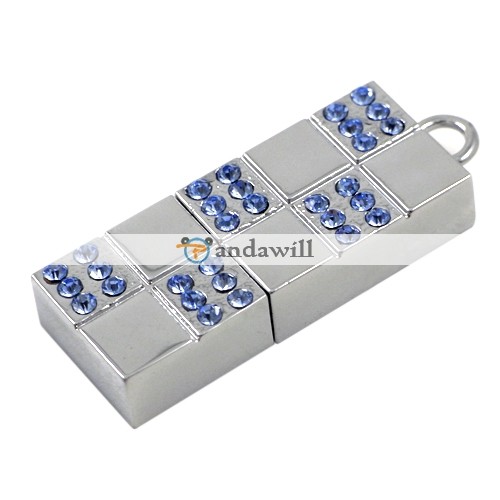1 X  4GB Flash Memory Disk Rectangle Silver With Blue Crystal
