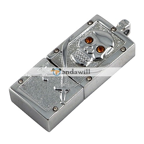 1 X  4GB Flash Memory Disk Silver Skull With Yellow Crystal