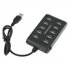 Portable High Speed USB 2.0 10 Ports USB HUBS Black