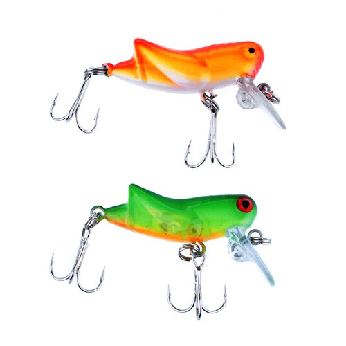 Sharp triple fishhooks with plastic locust fish lure.