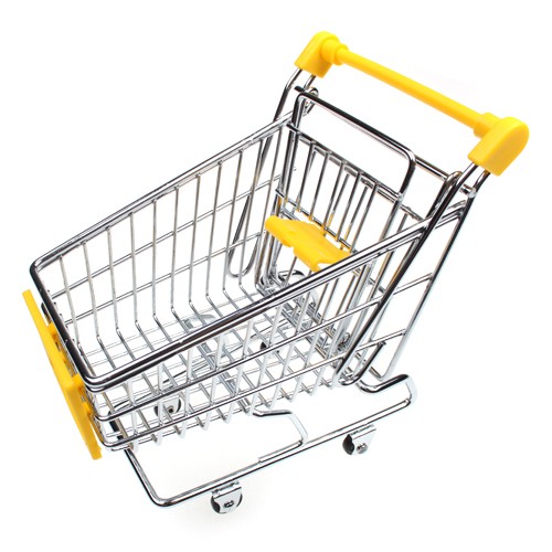 Cute Mini Chrome Plated Metal Shopping Cart Toy Shiny Silver& Yellow - Sku# PW15423