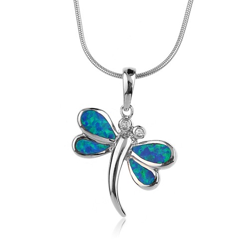 Blue Compose OPAL Decor Dragonfly Pendant With 925 Sterling Silver Chain Necklace - Sku# PW19324