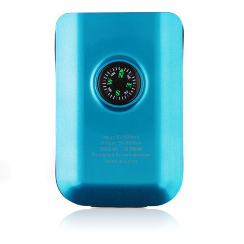 3000mAh Portable Mobile Power Bank with Compass Flashlight for iPhone MP3 MP4 Cell Phone -Blue - Sku# PW23724