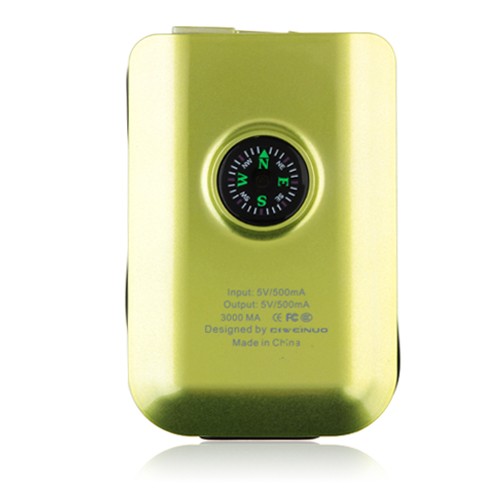 3000mAh Portable Mobile Power Bank with Compass Flashlight for iPhone MP3 MP4 Cell Phone -Green - Sku# PW23725