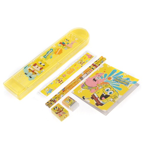 7 in 1 SpongeBob Pencil Box& Pencil& Eraser& Ruler& Mini Notebook Stationery Kit Yellow - Sku# PW15405