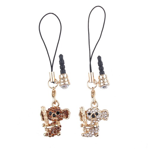 3.5mm Koala Style Rhinestone Decor Ear Cap Phone Strap - Sku# PW26358