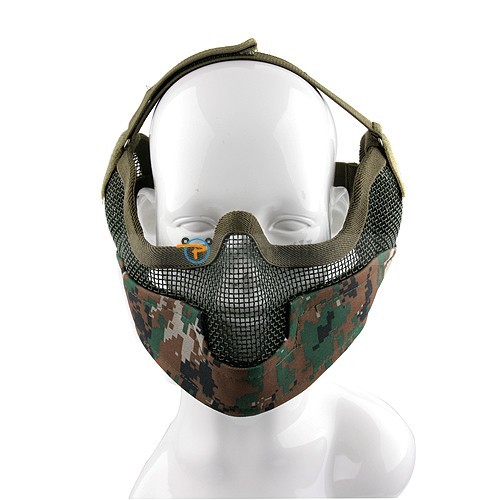 Military Green Camouflage Metal Protect Half Face Mask Double belt strap - Sku# PW14006