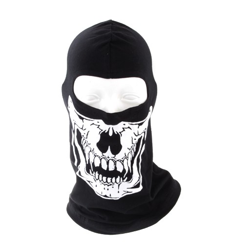 White Skull Pattern Full Face Hood Mask Black - Sku# PW23254