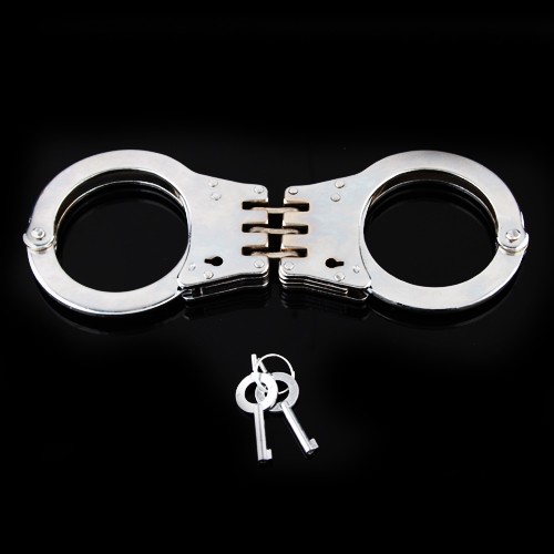 Silver Steel Double Lock Tri-Hinged Handcuffs Police Cuffs - Sku# PW23290