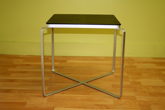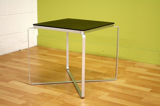 This simple side table will serve you well as a surface on which to display or rest a variety of items. Place it alongside a modern sofa or club chair with clean lines for maximum impact. Also available is a matching small round side table.