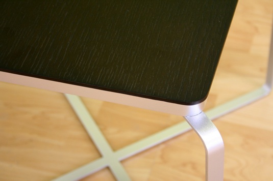 • Oak wood top with black finish • Powder-coated steel legs and frame wrap around bottom to center • 4 feet pads protect flooring from scratches and provide stabilization