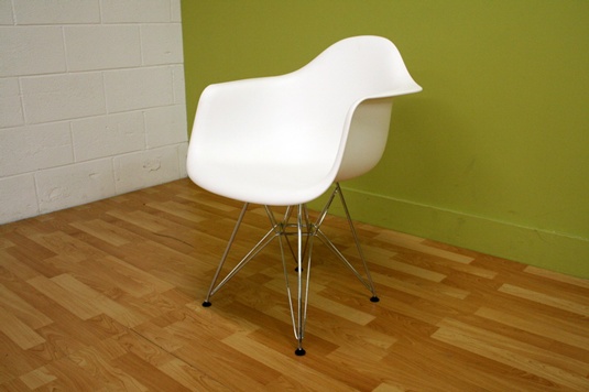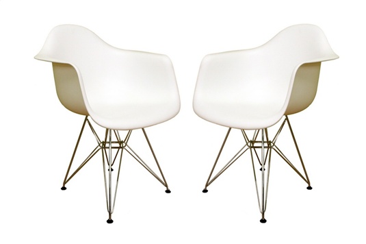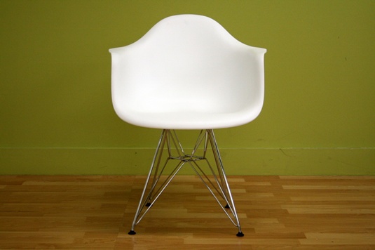 This versatile, contemporary chair is a barebones take on the shape of an armchair. The seat is made from a very heavy-duty, strong plastic with a matte finish and is supported by an equally strong steel base, which is covered with a layer of high-shine chrome. Four black feet are included to protect hardwood flooring. Very up-to-date, your inner sense of style will revel in the trendiness of this chair. Assembly is required.