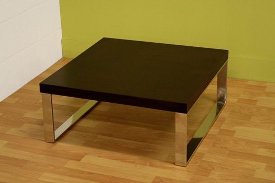 Simple, modern design updates any living room, den, or office. Sturdy piece of furniture is made of Walnut Veneer on MDF and stainless steel legs.