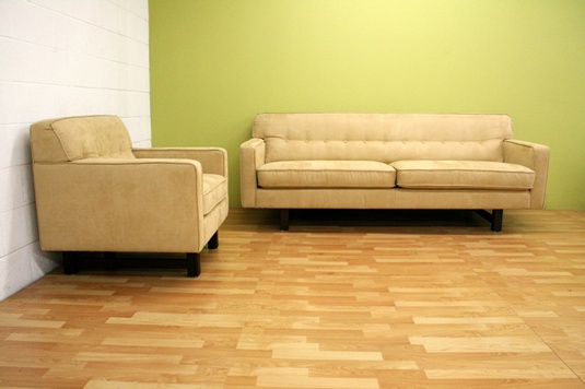 - Two-piece set: 1 sofa (seats 3 comfortably) and 1 chair